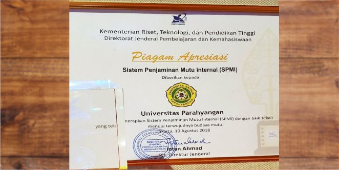 Pada peringatan Hari Teknologi Nasional (Harteknas) tahun ini, Universitas Katolik Parahyangan (Unpar) menerima Piagam Apresiasi Sistem Penjaminan Mutu Internal (SPMI). Penyerahan Piagam dilaksanakan pada puncak peringatan Harteknas yang berlangsung di Pekanbaru pada 10 Agustus 2018. Rektor Unpar Mangadar Situmorang Ph.D menerima penghargaan tersebut dari Direktorat Penjaminan Mutu, Prof. Aris Junaedi selaku Ditjen Pembelajaran dan Kemahasiswaan, Kementerian Riset Teknologi dan Pendidikan Tinggi (Kemristekdikti). Unpar menerima penghargaan tersebut bersama universitas dan sejumlah sekolah tinggi dan politeknik.